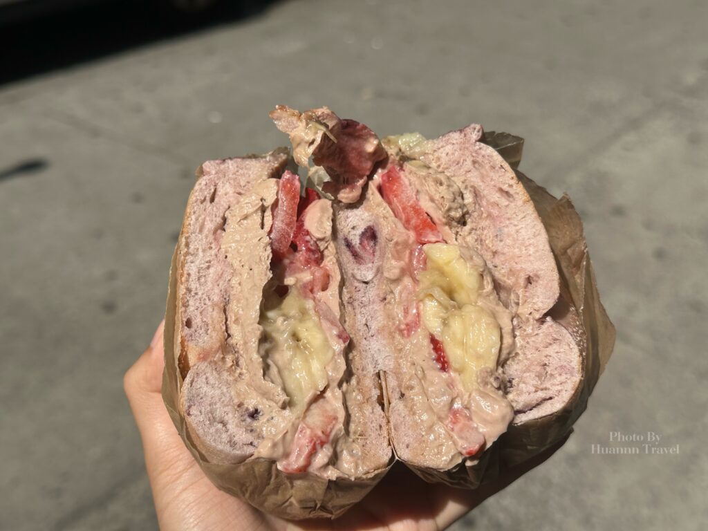這個是隱藏菜單,超級好吃!貝果口味我選了藍莓的,內餡則是banana nutella cream cheese和新鮮香蕉、草莓切片!吃起來完全不會膩,一口接一口的吃!喜歡水果的人一定要點!