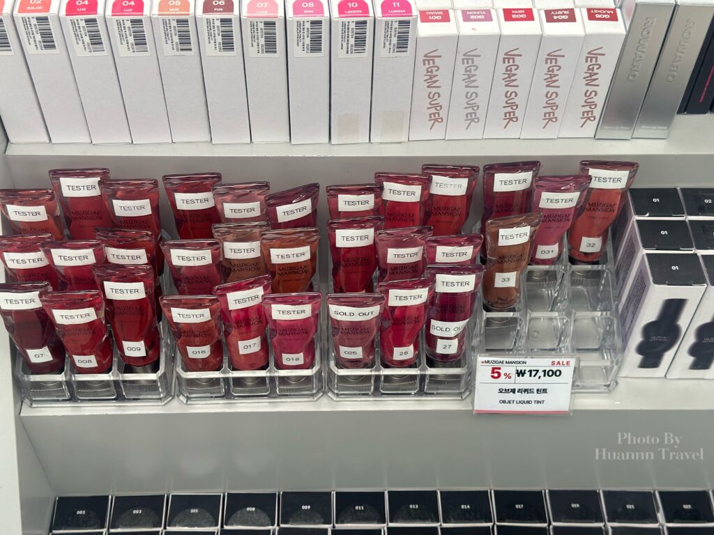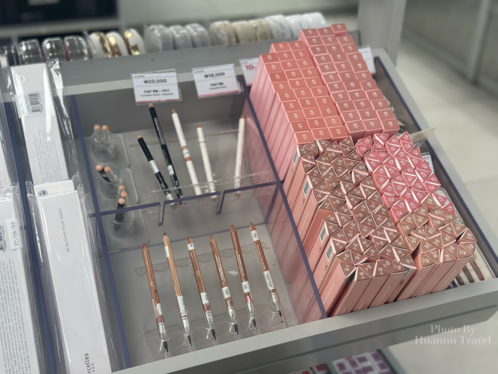 AOU 是近年在韓國彩妝圈迅速竄紅的小眾品牌,由Kitts的化妝師創立(幫張員瑛、aespa、NM1Xx、金世正、秀智、太妍、Tiffany、Redvelvet等明星都畫過妝)有光澤潤唇膏、潤唇釉、唇線筆、和愛心腮紅可以買!我這次就是為了這個來的哈哈