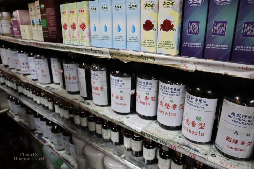 這家店開了快 60 年,就在上環蘇杭街上,外觀真的很容易錯過。進門後是滿滿的精油香氣,架上擺著來自世界各地的香薰油、按摩油、護膚原料,甚至還能買到一些香港五星級飯店常用的香味配方。