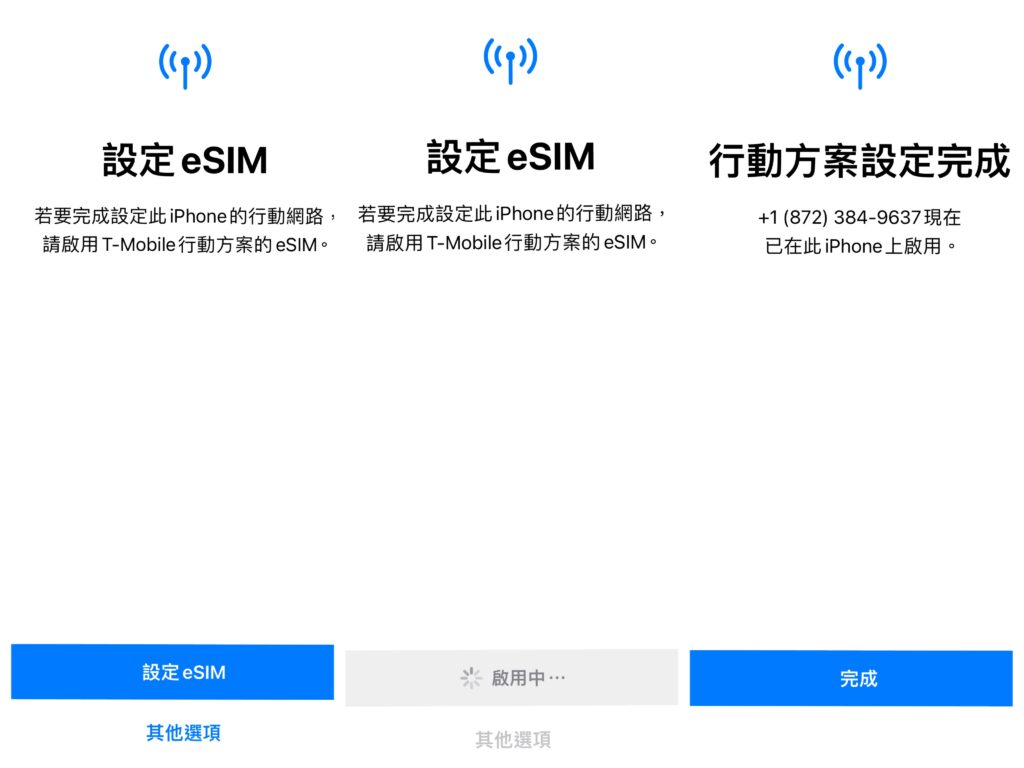 這張卡是 T-Mobile 提供的官方方案,使用 eSIM 格式,不需要拆手機卡、不怕遺失。購買後提供手機的「EID和IMEI2」給電信商,並且提供開啟網路的時間,待時間一到,就會自動完成設定開通,簡單快速!