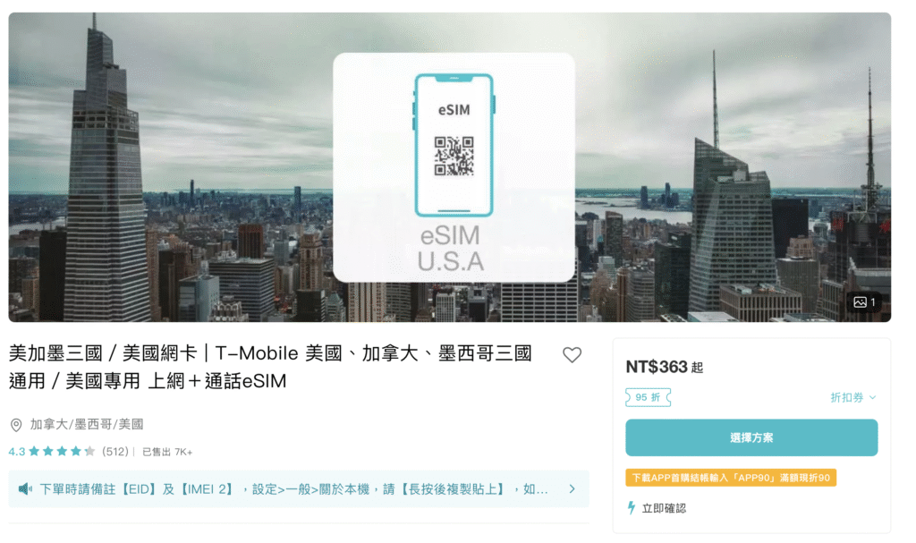 ▶購買美國eSiM:美加墨三國 | T-Mobile 美國、加拿大、墨西哥三國通用/美國專用 上網+通話eSIM